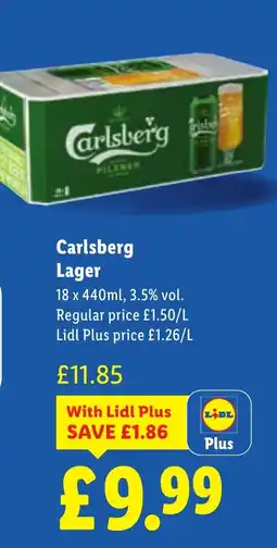 1Lidl Carlsberg Lager offerCarlsberg Lager 18 x 440 mlLidl£11.85£9.99£1.86 Discount26 March 202601 April 2026 View offer