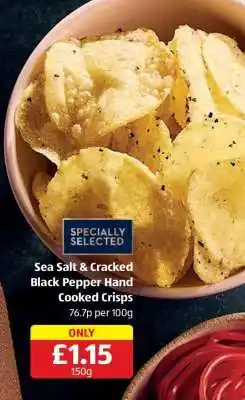 | 1 | Sea Salt & Cracked Black Pepper Hand Cooked Crisps | Aldi | £1.15 | 29 January 2026 | 11 February 2026 | View offer | |||