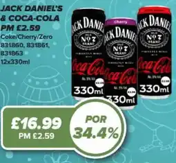 Iceland Jack Daniel's and Coca-Cola 330ml Pre-Mixed Can offerJack Daniel's and Coca-Cola 330ml Pre-Mixed CanIceland£2.8523 September 202527 March 2026