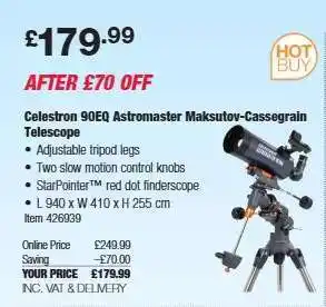 Celestron 90EQ Astromaster Maksutov-Cassegrain Telescope deals and online offers from the current Costco catalogue