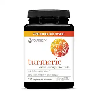 This promotion is available in various stores, view all products to get the cheapest Youtheory Strong Turmeric Advanced, 210 Count. If you'd like to find out whether this product has a bigger discount in another store, check the category 'Supermarket'. You may also find these offers interesting: Youtheory Collagen + Biotin Advanced, 390 Count, Youtheory Ashwagandha, 150 Count & Youtheory Collagen Liquid Natural Berry, 30 Count.