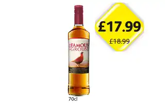 The The Famous Grouse is now available with a discount at Londis. On this page, you will find all the information about the current prices, the terms of the promotion, and how long the offer is valid. Don't forget to also check out comparable offers and promotions for The Famous Grouse, so you can always make the most cost-effective choice.The discount campaign for The Famous Grouse runs from 23-03-2026 to 19-04-2026. Has the offer ended? No problem, you can always view other similar offers. You can also follow the product category to stay updated as soon as The Famous Grouse is again on offer at Londis. By comparing The Famous Grouse deals, you can always ensure that you make your purchases at the most competitive prices. Keep checking our site regularly to see if The Famous Grouse will soon be available again with an attractive discount.